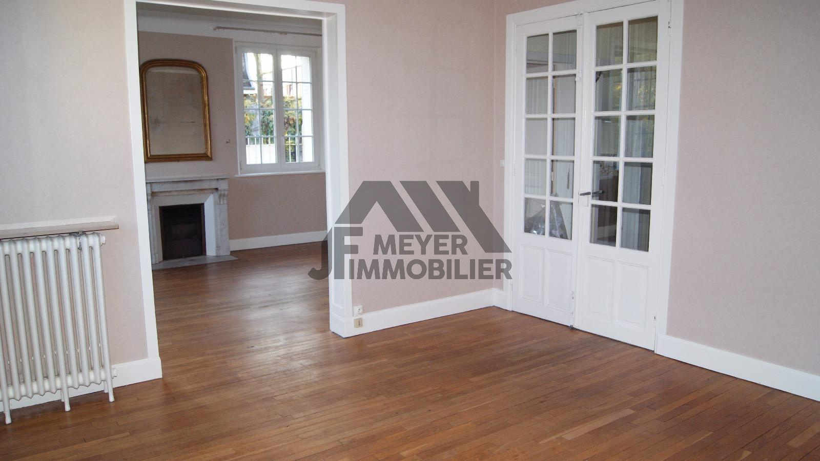 Parquet chêne, cheminée marbre, hauts plafond.